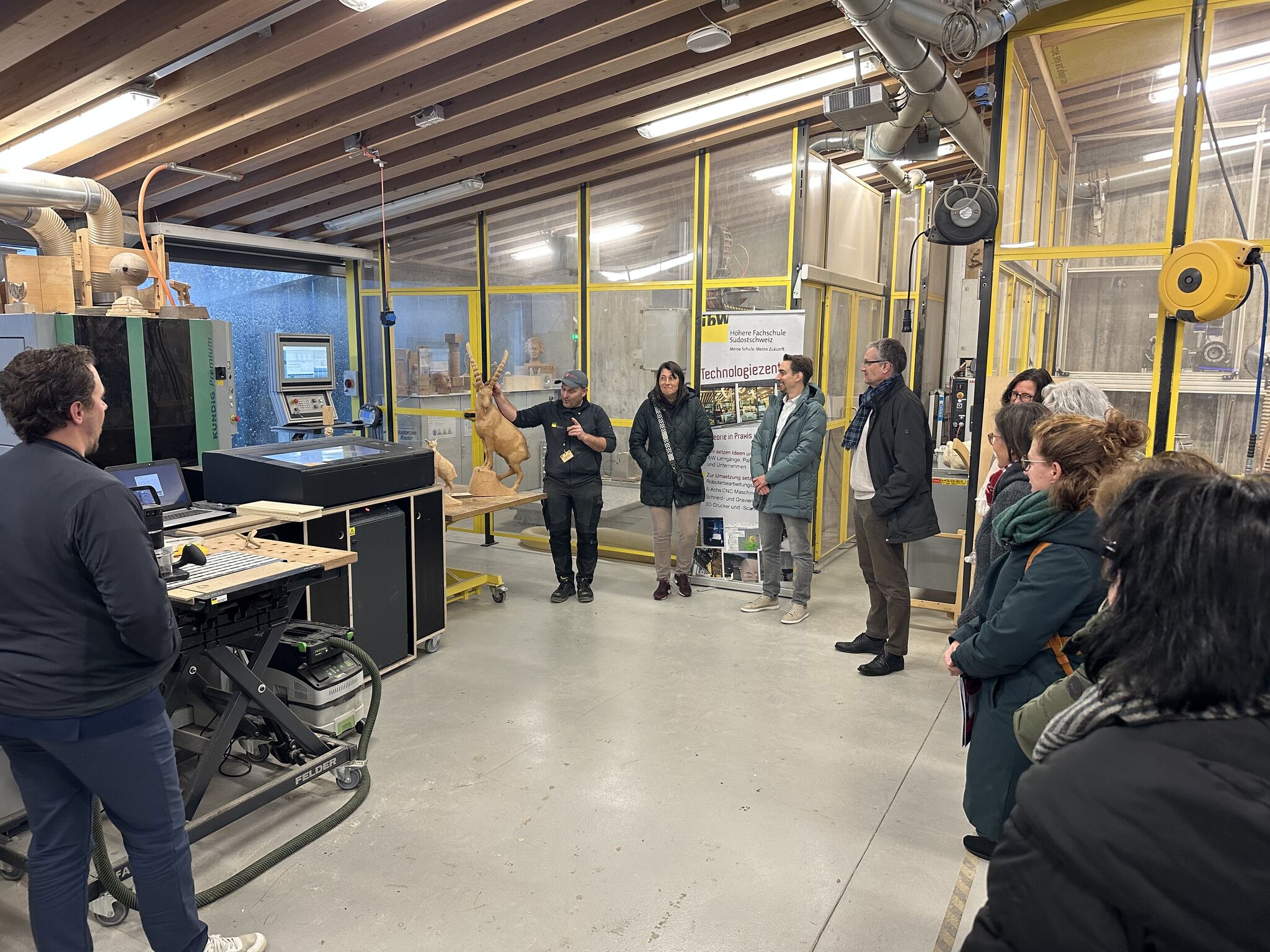 Beim diesjährigen Herbstanlass war die ERFA Personal Südostschweiz im Bildungszentrum Wald der ibW Höhere Fachschule in Maienfeld zu Gast. Nach einer Unternehmenspräsentation erhielten wir einen spannenden Einblick in die Försterschule und die Schreinerei wo wir miterleben konnten wie hochautomatisiert aus einem Stück Holz Steinböcke und andere Objekte gefräst werden. Im Anschluss zeigte uns Felix Anderegg von HR Campus eindrücklich auf, wie KI im HR eingesetzt wird und noch eingesetzt werden kann. Abgerundet wurde der Abend mit dem traditionellen Herbstessen, mit welchem uns die Küchenmannschaft der ibW Höhere Fachschule verköstigt hat. Herzlichen Dank allen Beteiligten!